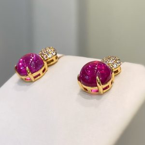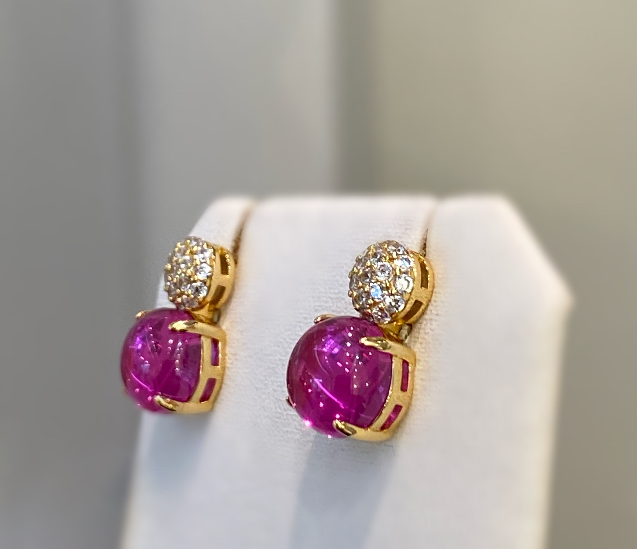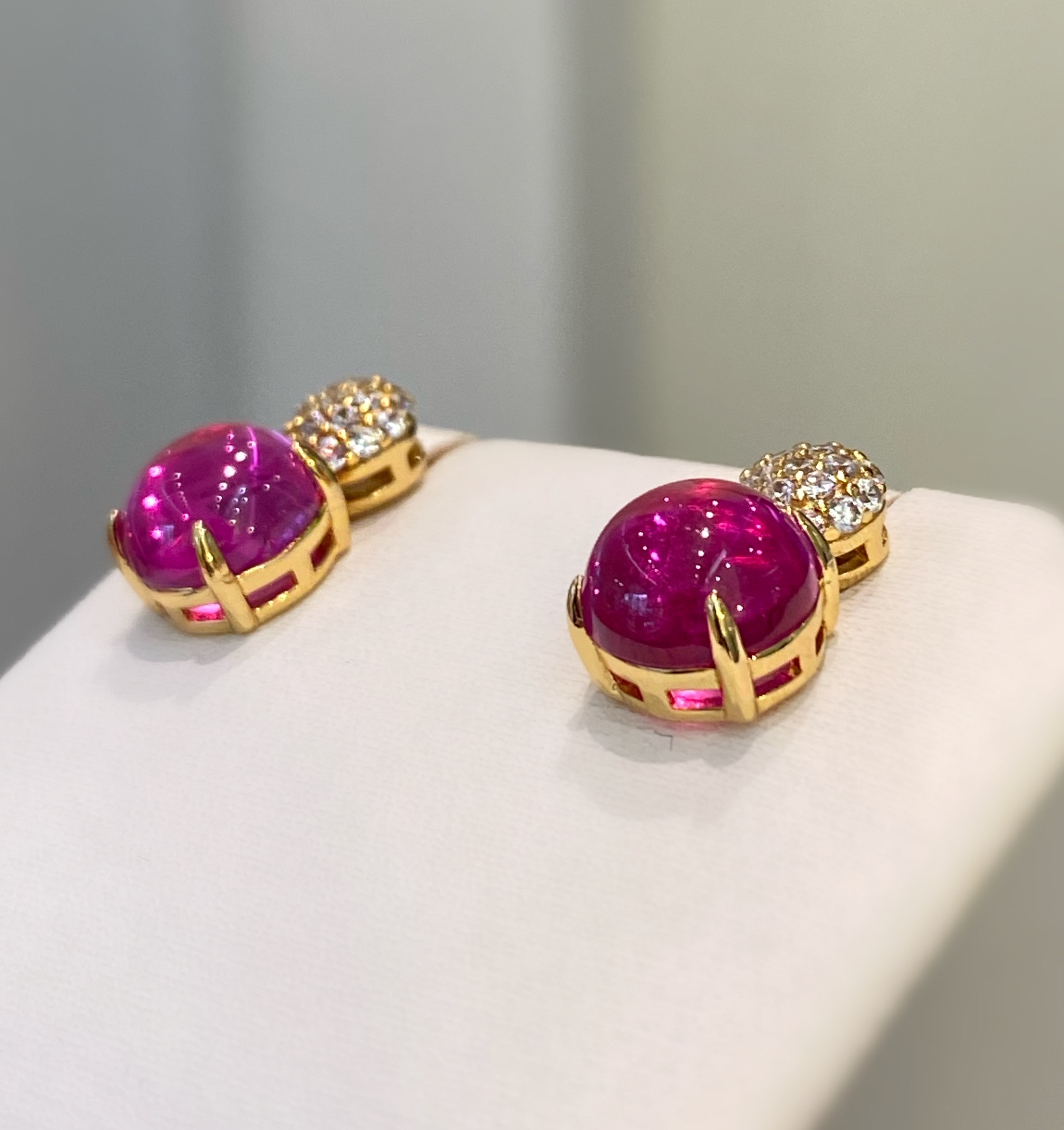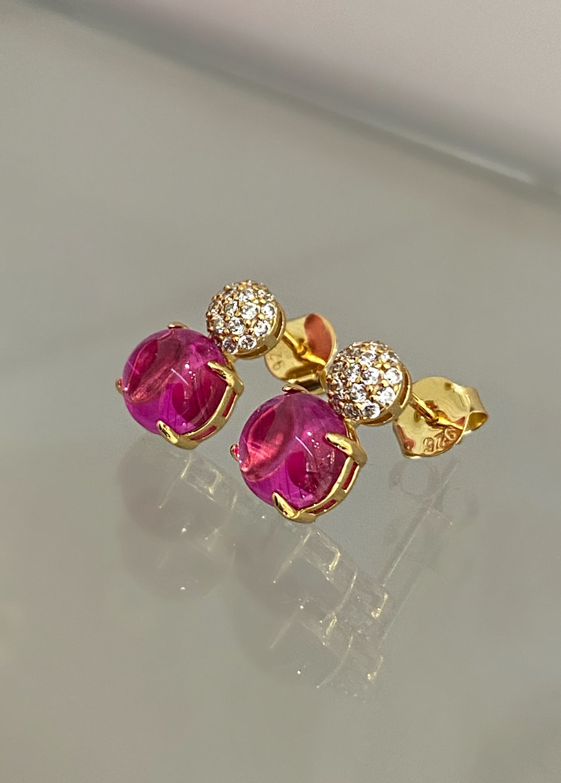 Gullhúðaðir silfurlokkar með sirkoníu steinum Og bleikum stein